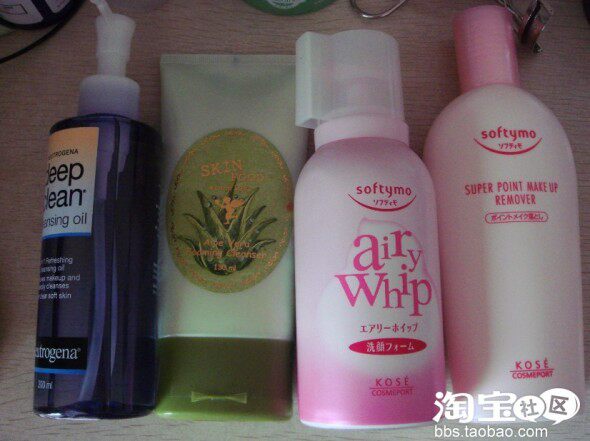 左二是skinfood的芦荟洗面奶,在新中关购物的专柜买的。价钱公道,量又足。泡泡很丰富,洗完蛮舒服的。洁面嘛,我就要个干净就好了~~