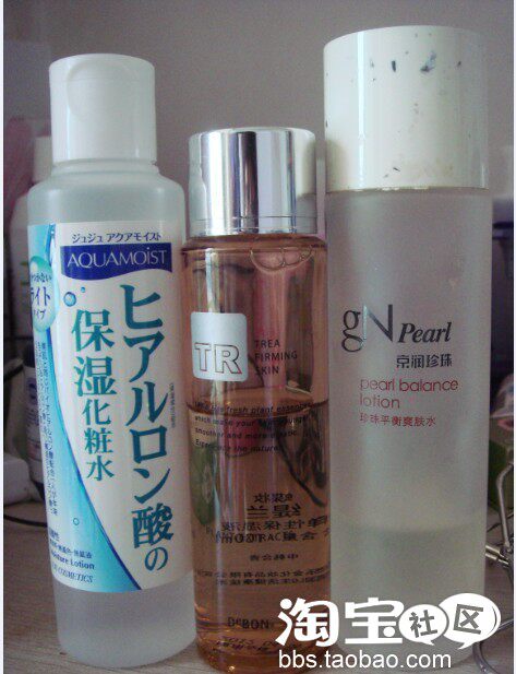 左三,京润珍珠平衡调理水。不知大家有没有听过这个牌子,专门做珍珠类化妆品的。这个水真的很清爽,用起来很舒服,好像才不到100的样子,平价又好用。~