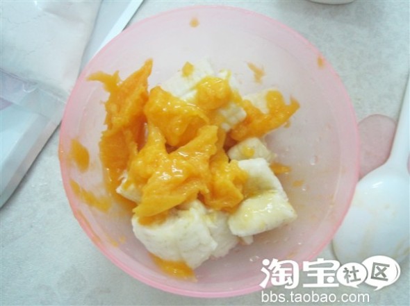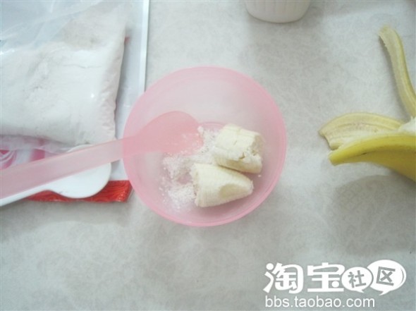 ...香蕉肉还是有一些大块的.....亲们可以把他挑掉的,或者放着一起做。