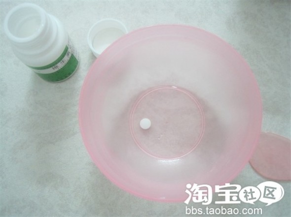如下图:先放一颗VC药丸在膜碗里,用调棒或者勺子来压碎 .VC片药店购得4.5元. 猫妹已经吃了2颗了,哈哈!