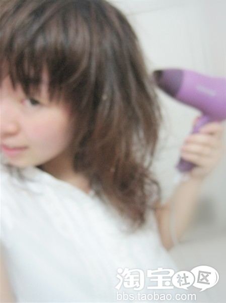 时间到了,来吹头发了,。。。。。好香的香蕉味,哈哈!!!!头发一定不能吹到全干哦!!