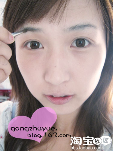 依旧是让出眉头,先从眉毛中间画到眉尾,然后不沾眉粉直接晕开眉头