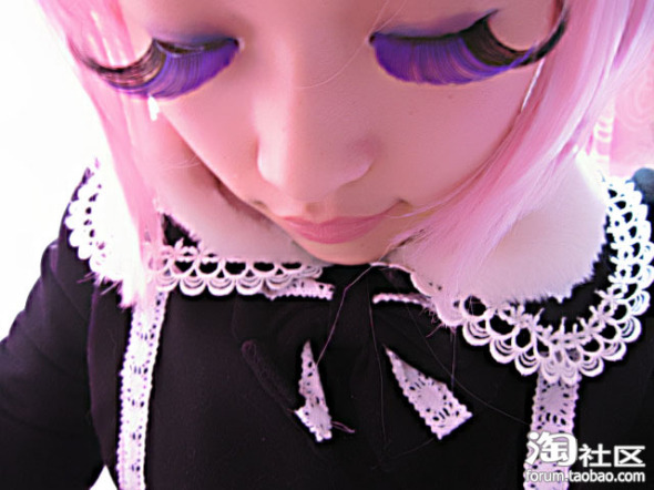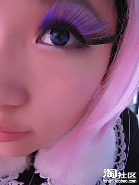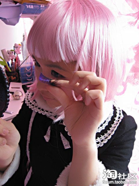 4.这个妆容的睫毛只需要浓密,不需要太长;在贴假睫毛时,要先把真睫毛夹翘和刷了睫毛膏再粘。睫毛膏在重复刷时,一定要在睫毛未干时刷。