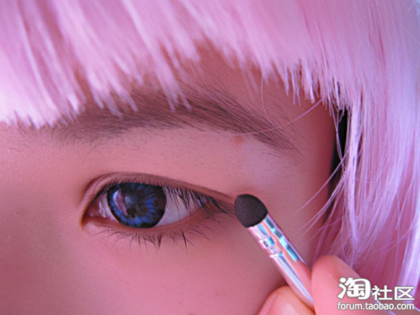 第二步:用眼影刷将眼影从眼尾往眼头部位开始晕开,再由眼线上方向眼窝慢慢地往上画,少量多次。下眼影部位由眼尾开始往内慢慢地晕开。