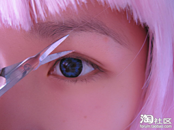 第五步:带上假睫毛后 睫毛膏把真假睫毛合二为一。