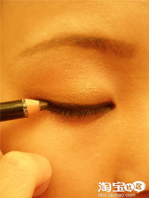 不会画眼线的MM们可以一半一半画先画眼尾 再画眼头部分 然后把中间连接