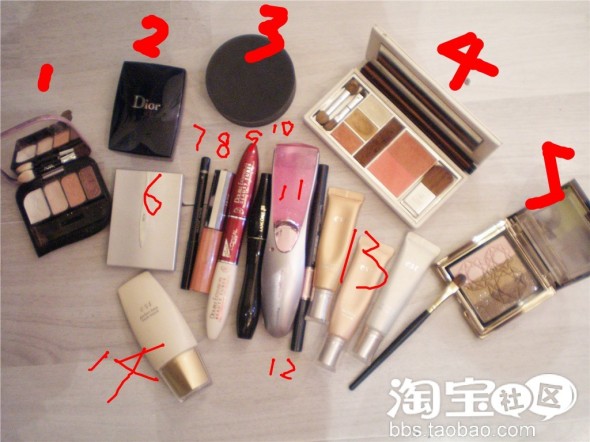 6AUBE双色腮红 7纪梵希眼线笔 8AUBE唇彩 9欧莱雅双头睫毛膏 10兰蔻催眠睫毛膏 11菲利普睫毛夹