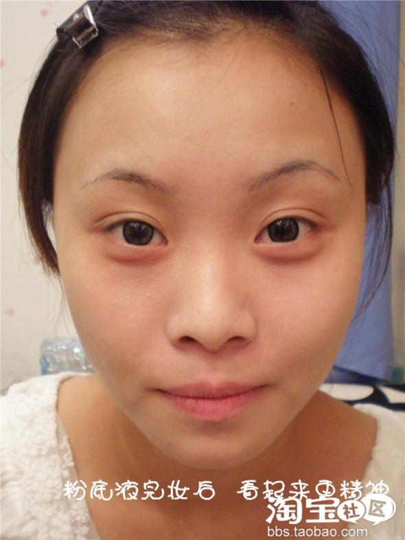 大家看一下效果。眼袋变小。黑眼圈被遮住了。哈!神奇吧