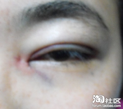第九天,右眼,眼皮下还有淤血有点泛黄,也还有线头