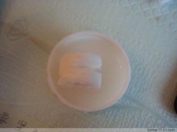 利用化妆棉取充分冷冻过的化妆水在两腮进行5-10分钟的敷脸