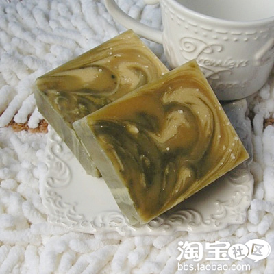 薄荷绿茶牛奶皂 ···很嫩绿的绿茶粉 加进去结果变褐色··老爸很有经验的说 茶叶就是会变褐色··