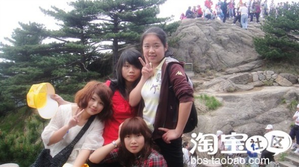 再上一张生活照,在黄山的,最左边的是我,素颜。