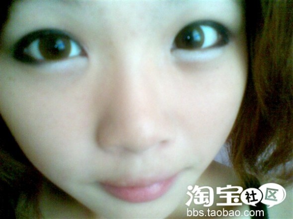 第一张 素颜,拍了点柔肤水,抹了乳液,戴了棕色的美瞳。