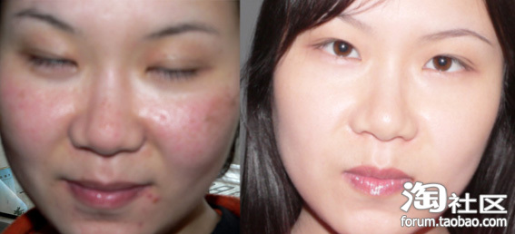 左图是我06年过敏时的皮肤,右图是我抗敏半年后的皮肤(描了眉眼涂了口红,但脸上没抹任何东西)