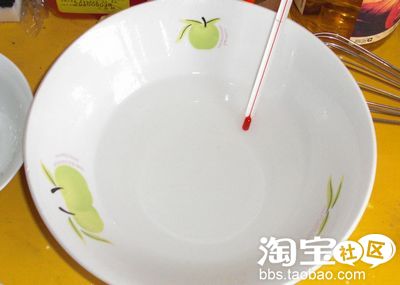 使用工具:搅蛋器(初学者最好用手摇的) 盆2个(一个放油 一个放水) 量杯 温度计(100°内的 偏高的测出来不是很准确) 搅拌棒(筷子也可以) 称(精确到O.1克)