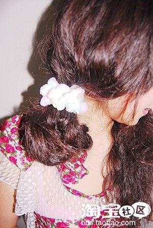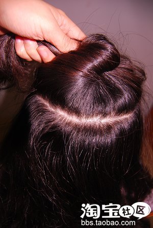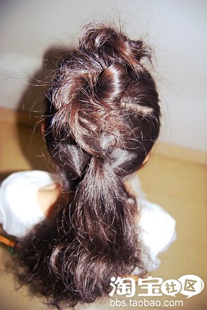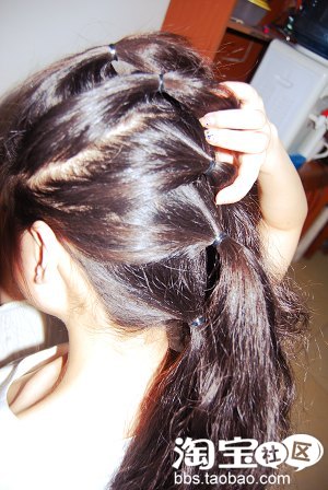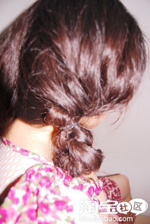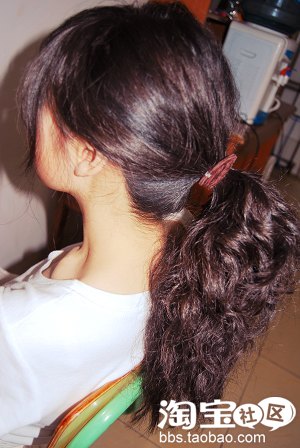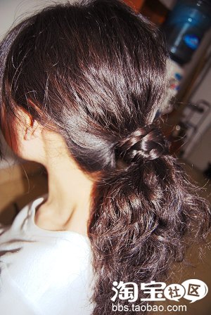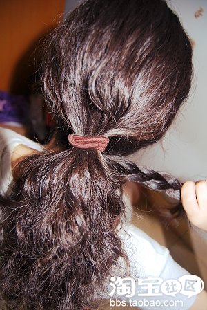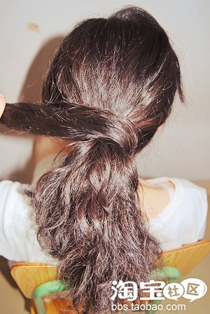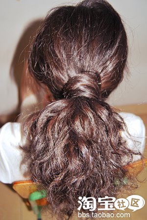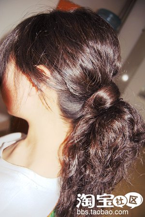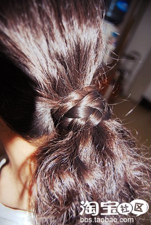 5.最后是用橡皮筋把尾部的头发扎上去