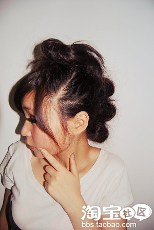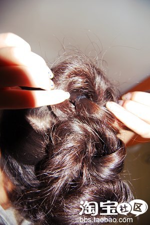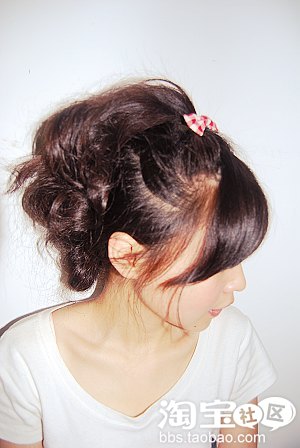 6.用手将初步成型的头发团扯开,让其更松散,更随意