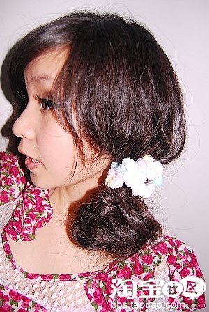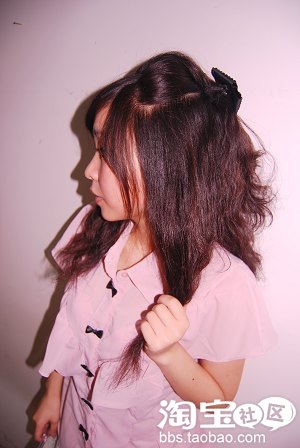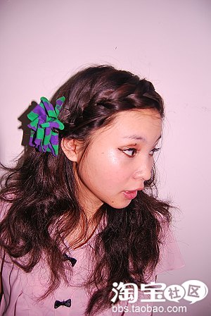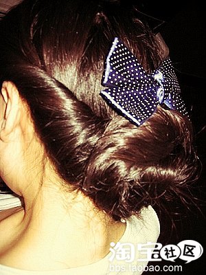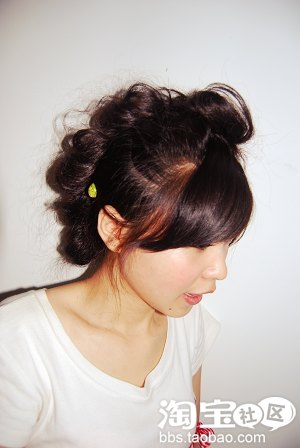 5.加上夹子,非常的公主啊,从正面和侧面均可以看到头发的拱度,很复古哦!
