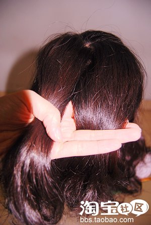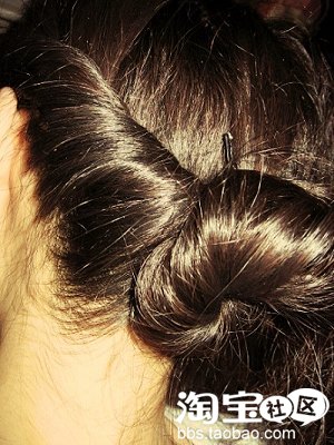 3.最后一直到脖子上方,顺时针方向用夹子固定头发