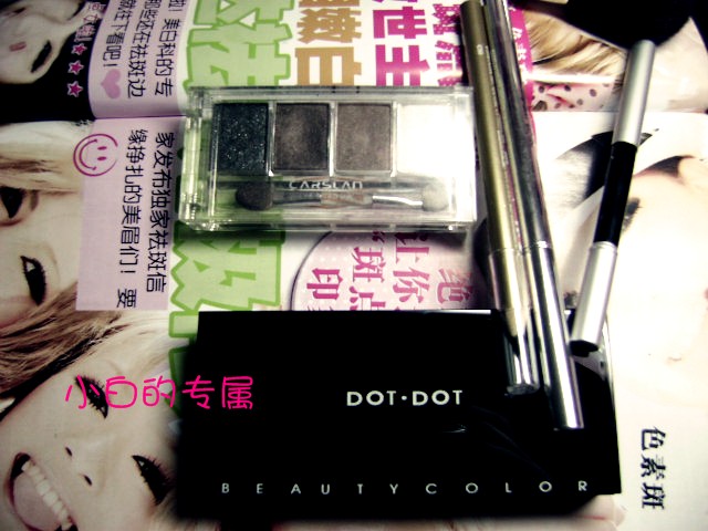 DOT.DOT晶钻蜜桃眼彩盒(七色)眼影,超爱这一款的,有7种颜色,还可以用里面的黑色化眼线,因为有7种颜色,会让眼睛看起来更有层次感,不过化起妆来就比卡姿兰的那个要麻烦一点,但是认真化好以后的效果,绝对是很赞很赞的。。价格60左右