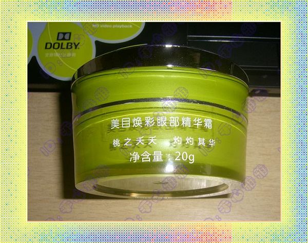 眼霜的瓶子颜色很赞,嫩嫩的绿色~桃之夭夭·灼灼其华这句话貌似是句古语~我孤陋了。。。感觉很有伊人在水一方的感觉HOHO。打开盖子,里面还有个密封的小盖子。打开后就是这样的。