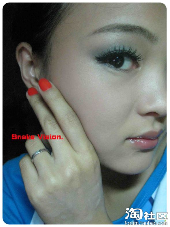 有的亲们可能会觉得,一副假睫毛好像出来的效果不是很好,没错、Snake也深有同感,所以、建议亲们沾上两幅假睫毛,这样睫毛才会有非常浓密、像羽扇一样的效果……看图吧、两副的效果哦。