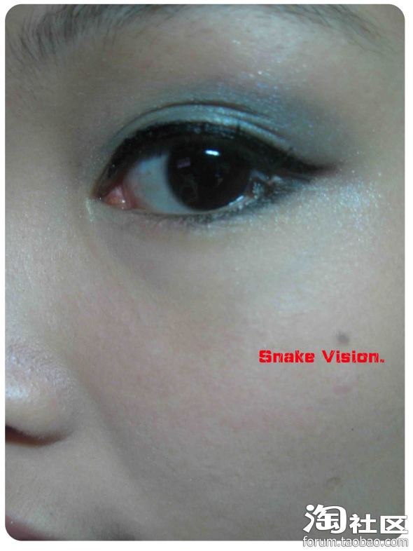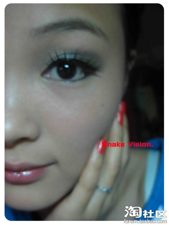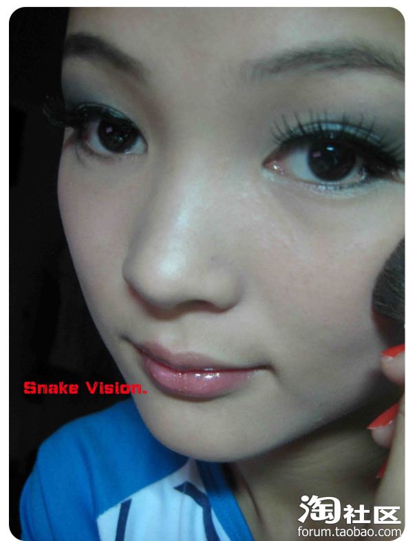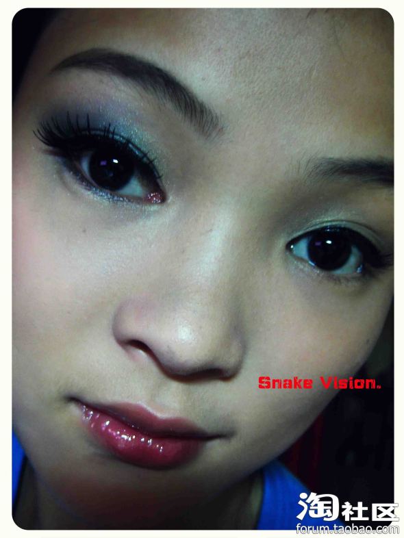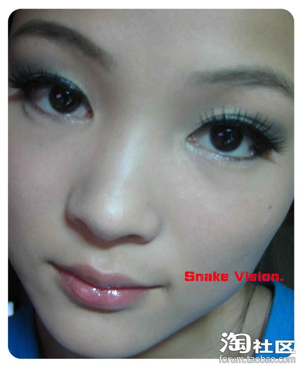相信各位亲们已经看到了,Snake的下眼线只画了眼睛长度的三分之二,而且也是眼尾粗、眼头细……效果也是很明显的,眼睛变大了。如果希望眼睛看上去更大,亲们还可以戴上美瞳,Snake自己不是很喜欢美瞳,所以就不在这里给大家展示啦、不过戴上美瞳的确是会漂亮很多、喜欢的亲们可以自己随意……