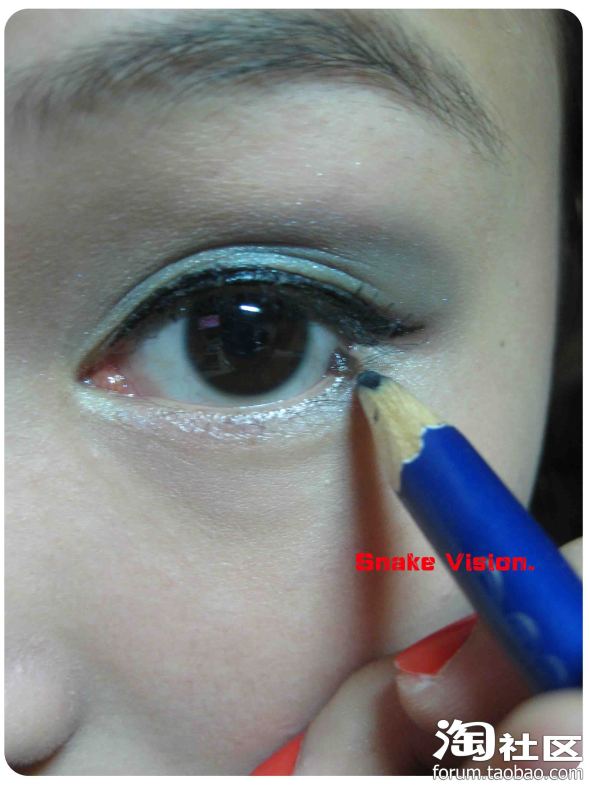 下眼线也是必不可少的,但是Snake建议,下眼线用眼线笔来化,效果不会太僵硬,比较自然一些,不会让眼睛看上去像套了一个黑圆圈一样。