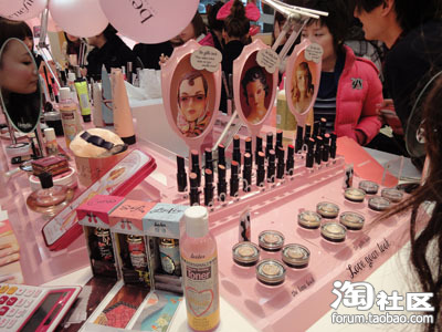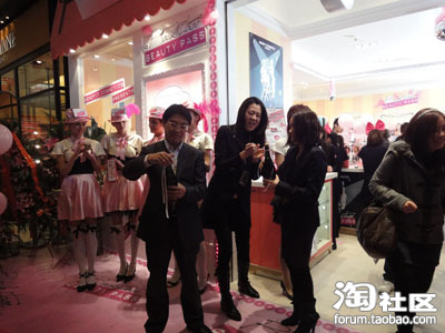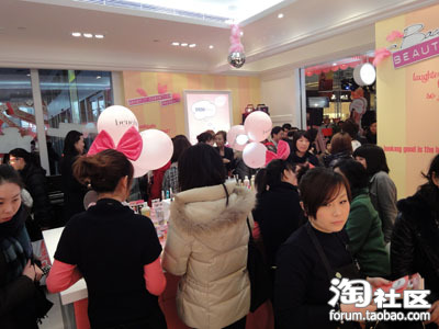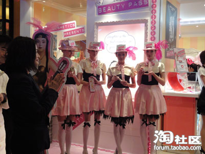 (门口的4位粉粉的外国妞,好喜欢,手里分别拿着B家的明星产品)