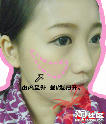 第八步:腮红腮红要用纯色的,最好不要有珠光的。如果MM们觉得腮红容易掉色,就用一般的口红代替吧。