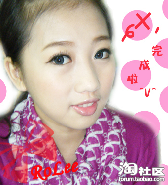 啰嗦一句:Rolee建议JMS如果贴的不是透明骨的假睫毛,最好用黑色的胶水。除非你是很有经验的高手MM。否者难说会不会贴不稳或位置不佳,需要重贴。用白色的胶水会无敌的明显!很让人抓狂的。(因为小女有过类似的经验,只有一副假睫毛了,很是无语的。结果害同学考试得了历史最低分。)