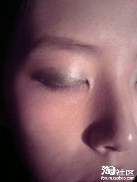 先用银色的眼影在眼皮上大面积的打底。