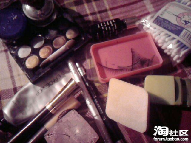 这就是今天化妆要用到的主要工具,不可少的是眼影和假睫毛。
