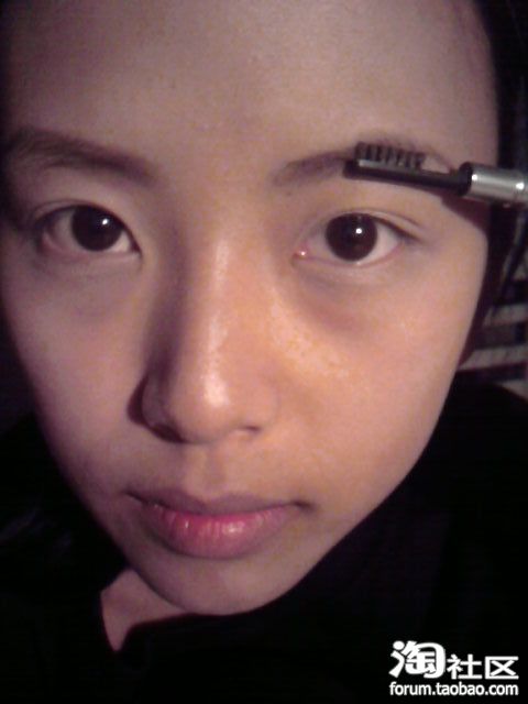2:然后用眉笔慢慢的顺着眉形图开,直至涂满。(记住不可避开眉形肆意妄为)