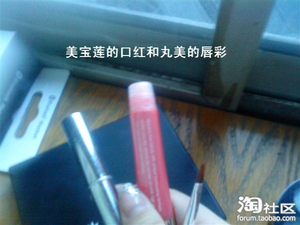 先用口红(美宝莲)打造健康色 再用同色的唇彩(丸美)来提亮