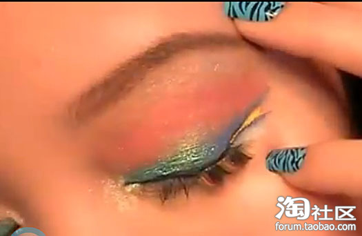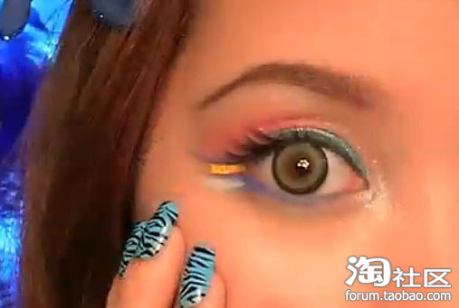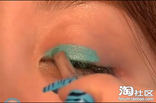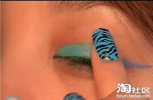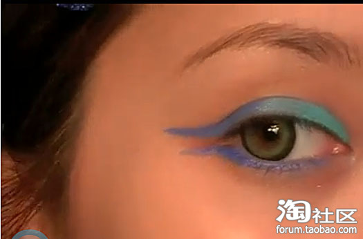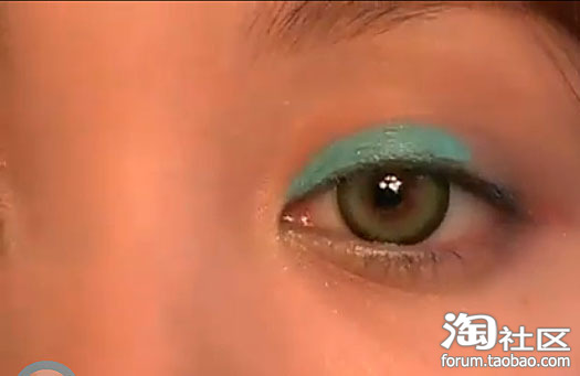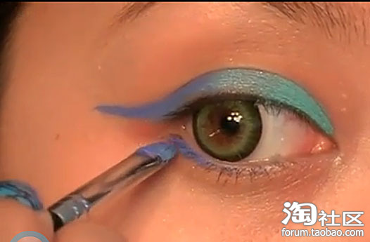 开始画眼妆 用蓝色的眼影 记得一定要是膏状的才可以哦 粉的质地没有真实感 大牌子哦