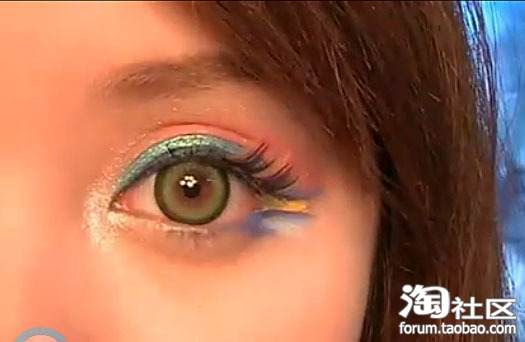 变身纳美人MM第一步,先带上绿色的彩片,影片里面眼睛是黄的 ,但是现实中弄个黄色的有点太吓人了,我们只求神韵,神似即可,绿色的还PP哦