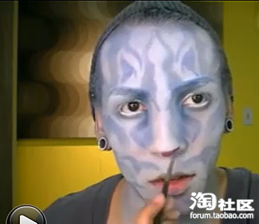 画个贼时尚的阿凡达时尚妆容。下面给大家推荐2种,一个是帅锅演示的写实版本的,推荐在家呆着没事画着玩,上街就不必了,