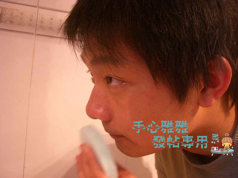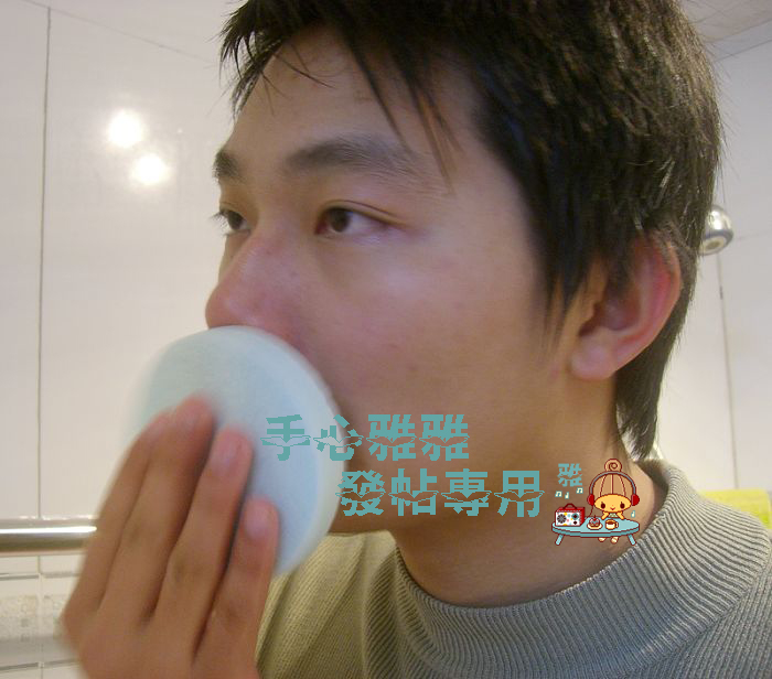 首先:先用海绵蘸着温水把脸弄湿,干着洗脸效果减半哪~