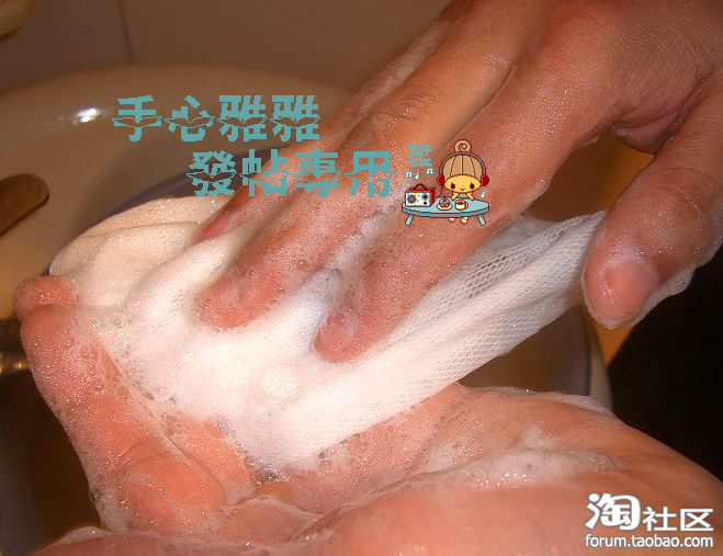 应该是把起泡网的三分之一处夹在左手中指和无名指之间