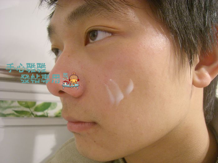 最后是乳液啦~我给他用的是资生堂水之印的蓝绿色乳液~