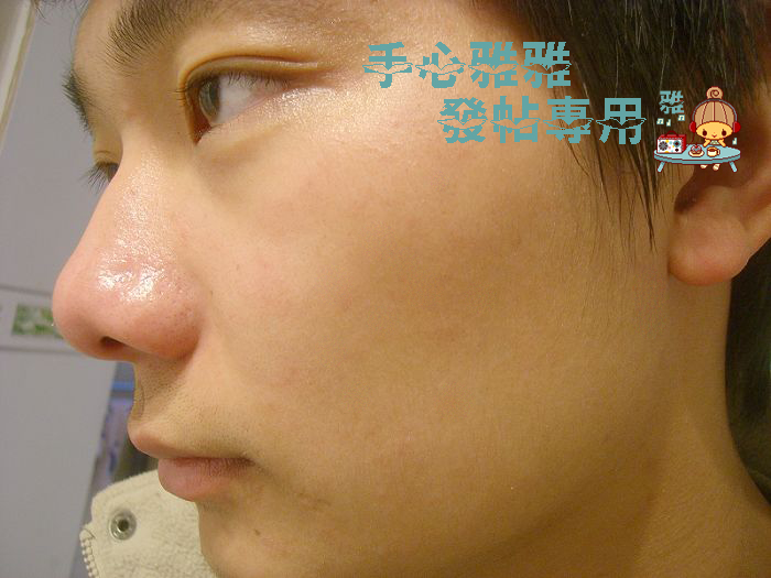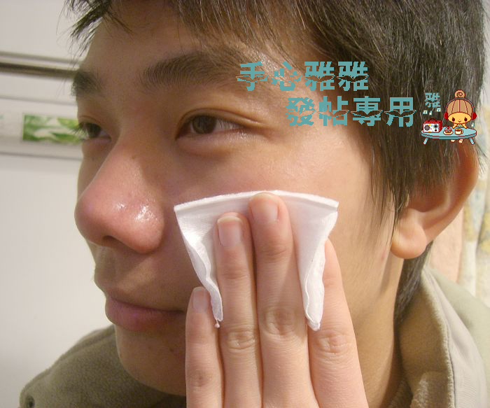 然后我用保湿水擦去了他脸上多余的精华和刚才分泌的油脂