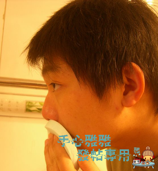 发现嘴唇有点干燥 我让他用海绵稍微敷下嘴唇