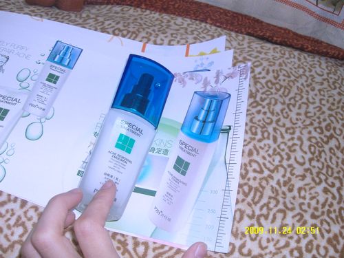 准备好洗脸的MM们、(中间--药皂)(右手--洗面扑)(左手--痘痘清(乳))