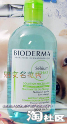 2、Bioderma贝德玛净妍卸妆水。恩,很好用,平时只涂隔离的MM很适合用,价钱便宜且快速清爽。