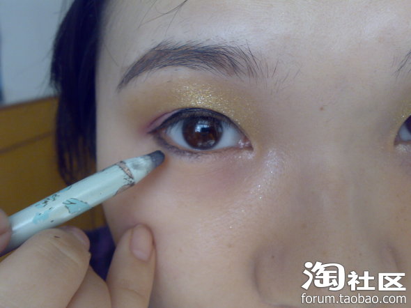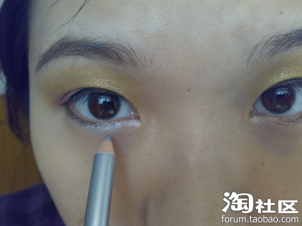 眼头用银白色眼线笔的打亮