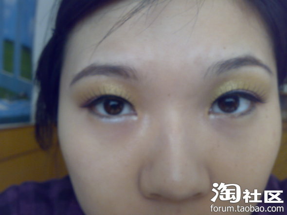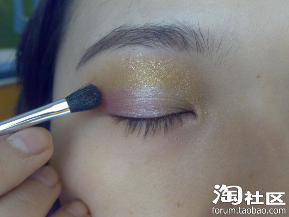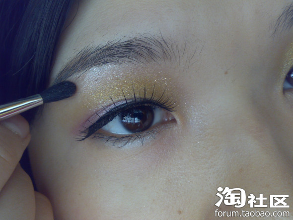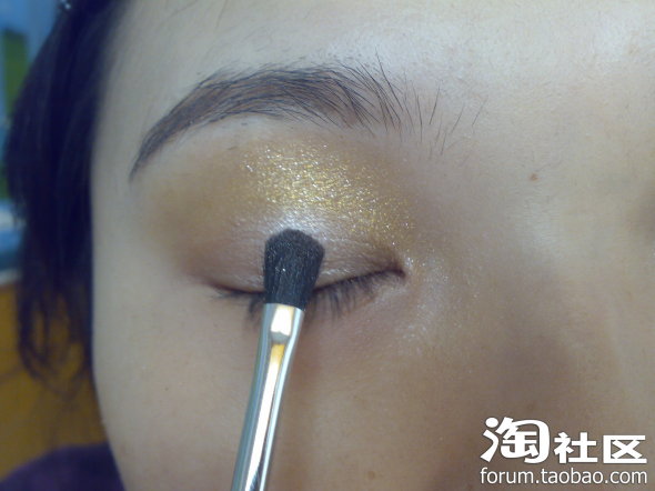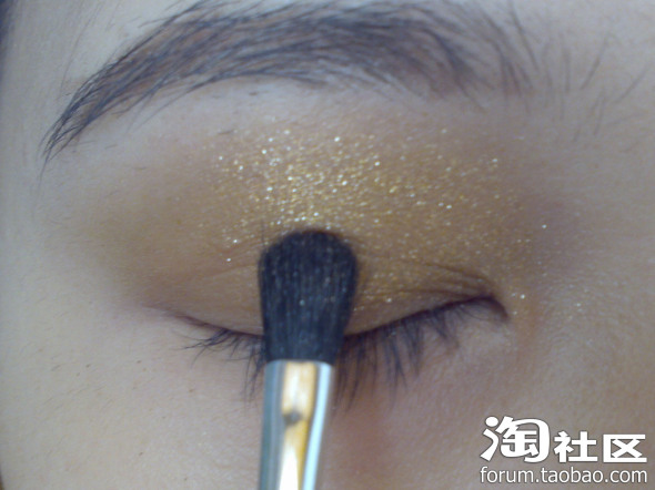 先用金色的单色眼影打个底~