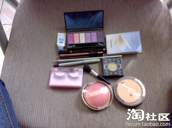 那个眼影和假睫毛。还有腮红是MIKO家买的把~