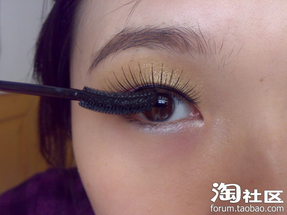 刷上睫毛膏,让真假睫毛更好的结合在一起~