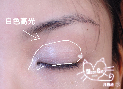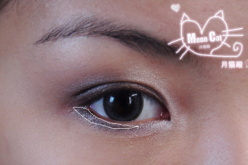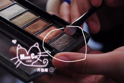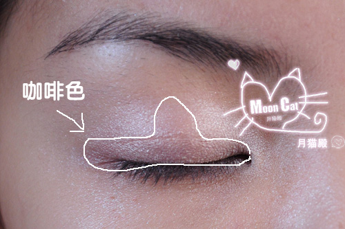 用这个颜色,先刷在眼线那一个位置,然后朝上中间那块晕染开来~~